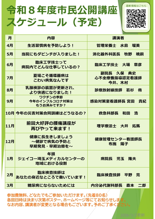 開催日・時間等、詳細は決定次第、院内掲示・ホームページにてご案内いたします。