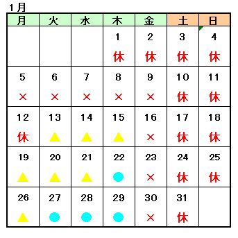 ●・・・空きあり ▲・・・残りわずか ×・・・空きなし
