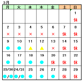 ・・・空きあり  ・・・残りわずか  ×・・・空きなし
