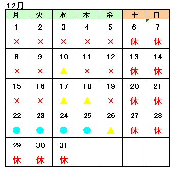 ●・・・空きあり  ▲・・・残りわずか  ×・・・空きなし