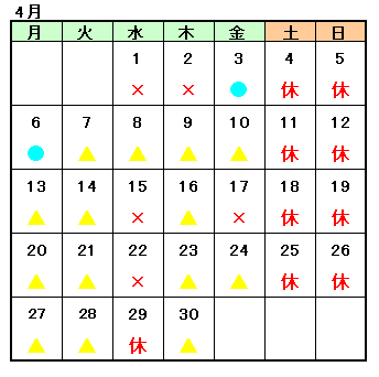 ●・・・空きあり ▲・・・残りわずか ×・・・空きなし