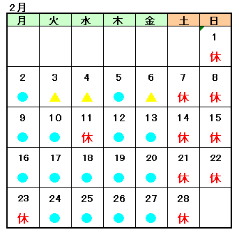 ●・・・空きあり ▲・・・残りわずか ×・・・空きなし